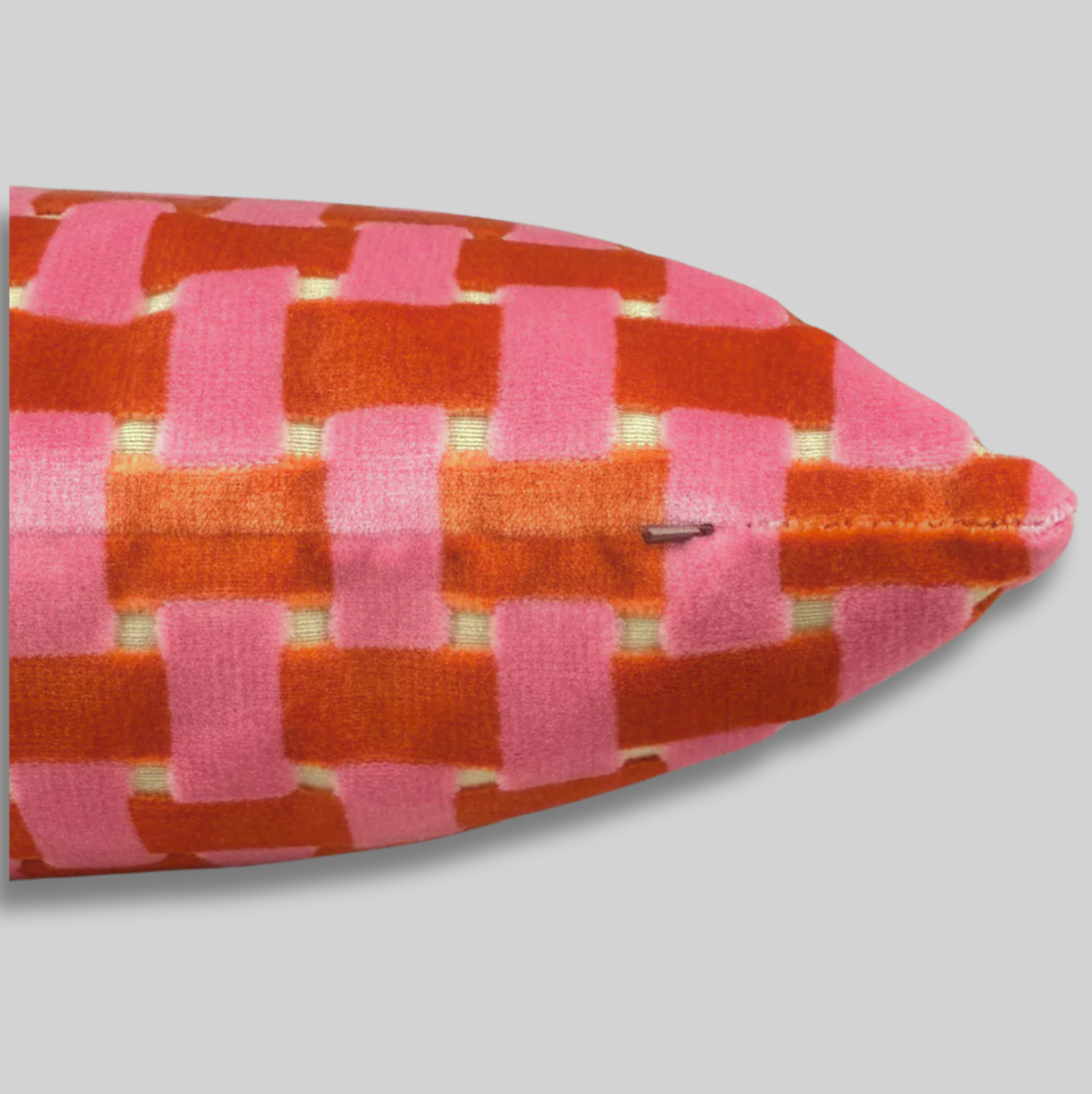 Add a playful pop of color to any space with the Gwen Cut Velvet Pillow. Featuring a textured basket weave design and identical front and back, this statement pillow looks great from every angle. Perfect for sofas, beds, and chairs.