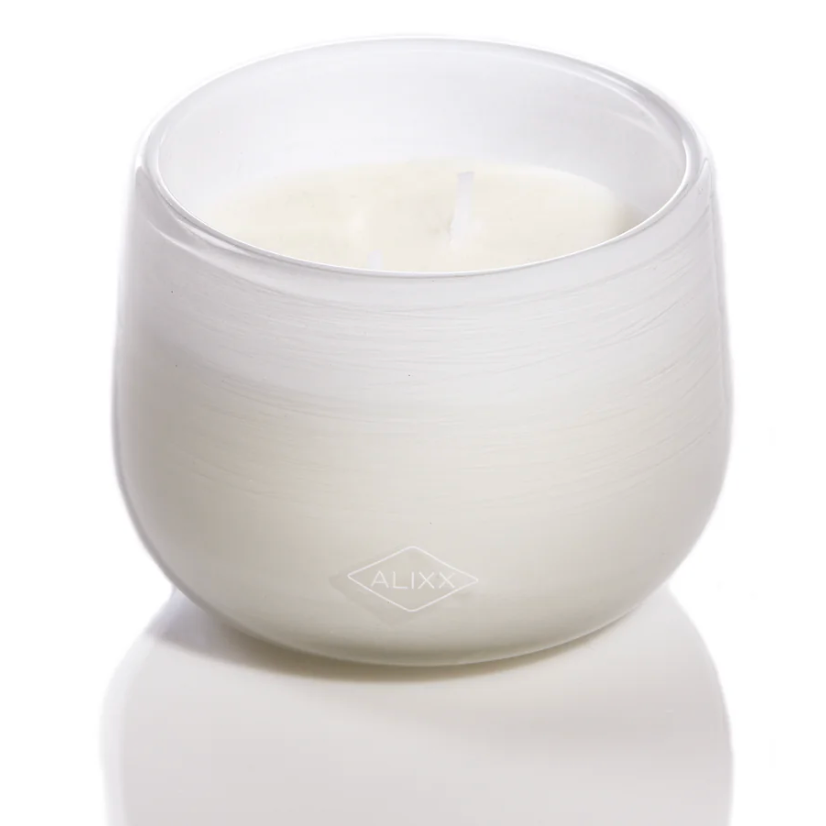 A vibrant, refreshing fragrance blending lemon, basil, and tea leaves with lily of the valley, water cedar, and soft musks. This soothing scent creates a pure moment of relaxation, while the white glass adds a clean, modern touch to any home décor.