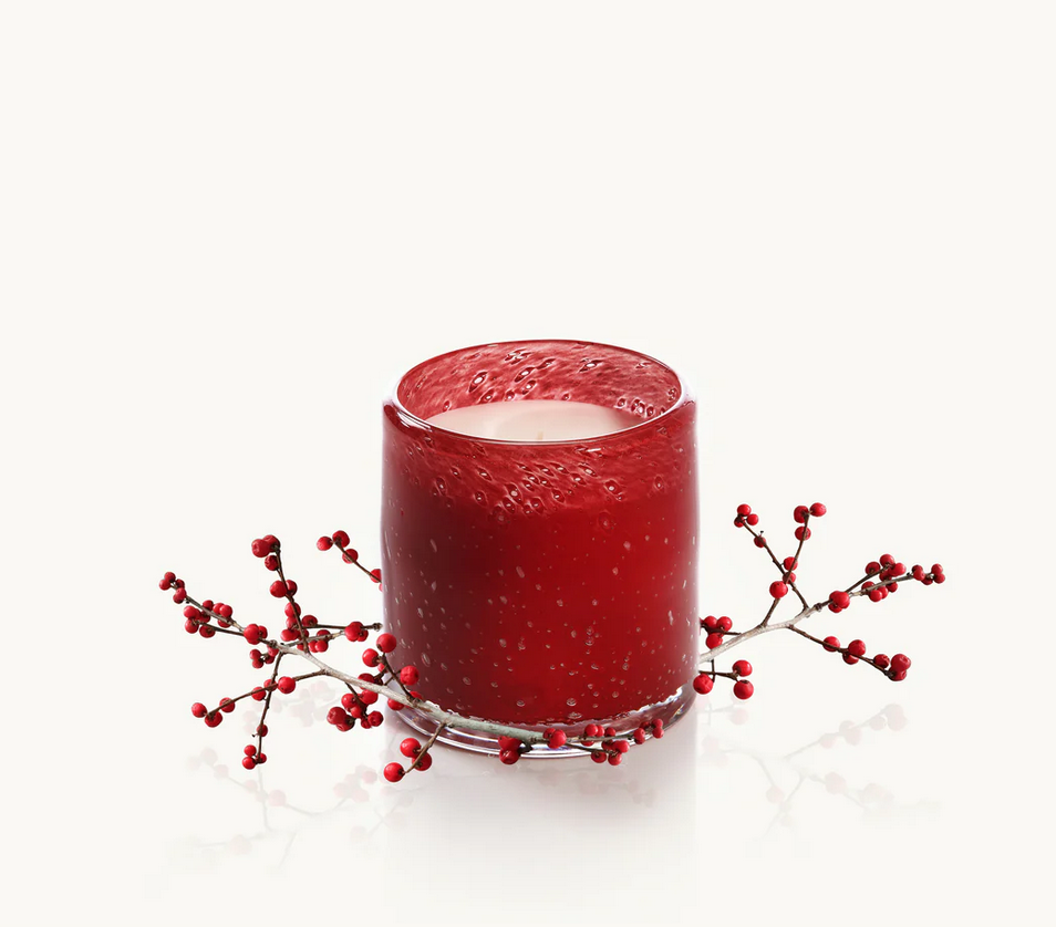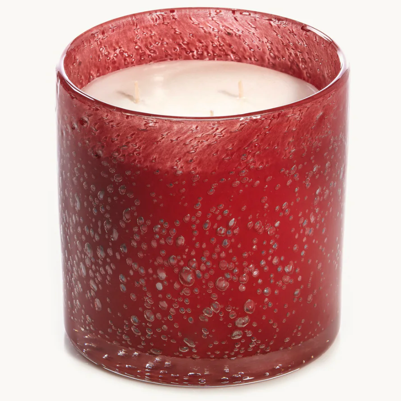 Châlet en Hiver is a warm holiday fragrance with notes of cinnamon, ginger, and creamy vanilla. Poured in red bubble glass, it fills your home with the comforting scent of gingerbread.
